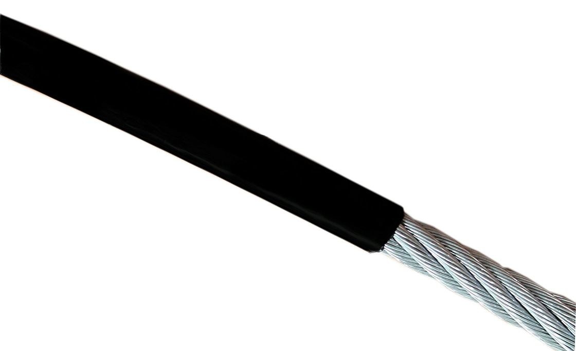 L'acciaio inossidabile 18-8, cavo metallico vinile-rivestito con costruzione standard 7x7 può essere utilizzato sopra le pulegge, il sartiame, argani, nelle attrezzature di esercizio e nei meccanici della porta del garage. Questo cavo metallico è colorato nero per facilità del riconoscimento. L'acciaio inossidabile 304, anche chiamato 18-8, è resistente alla corrosione, resiste a riportare in scala e resiste alle temperature elevate per una vasta gamma di operazione. L'acciaio inossidabile è un materiale comune e versatile utilizzato in un'ampia varietà di applicazioni ed in atmosfere saline. Il vinile, anche chiamato cloruro di polivinile (PVC), è resistente alla corrosione, leggero ed ha ad alta resistenza. Resiste alle reazioni con gli acidi, la benzina, l'alcool e gli idrocarburi. È flessibile ed è resistente ai raggi di (UV) di ultravioletto e del tempo. Il rivestimento del vinile è una plastica dura e durevole che resiste alla maggior parte dei prodotti chimici, ha stabilità dimensionale eccellente e può essere sterilizzato. Resiste all'olio, assorbe i bassi livelli di umidità ed è non conduttivo. il centro standard del filo della costruzione 7x7 ha sette fili del cavo metallico con sette cavi in ogni filo ed è formato elicoidale intorno al centro del filo. il centro del filo 7x7 è più forte ma meno flessibile che 6x19 e 6x36 classificano le costruzioni.