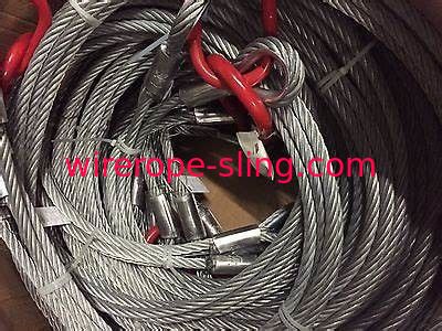 L'imbracatura del cavo metallico non è abbastanza come bene durevole. L'imbracatura del cavo metallico non è flessibile quanto la catena ma la sua maggior rigidezza può essere un vantaggio se deve essere inserita con una piccola apertura o sotto un carico. Tuttavia, una volta avvolto un carico, l'imbracatura del cavo metallico tende spesso a deformare permanentemente alla forma del carico. Il cavo metallico adatto ad imbracature viene in vari gradi e costruzioni. Nella maggior parte dei casi avvolgendo - posteriore ed assicurare il ciclo con una manica del metallo termina la corda. Ciò forma un ciclo o un occhio molle, la forma più semplice di estremità dell'imbracatura. I ditali sono usati per sostenere e proteggere l'occhio da abrasione. Il cavo metallico è generalmente più economico e più leggero della catena cui può essere la a più, specialmente per le applicazioni che richiedono le lunghezze lunghe dell'imbracatura.