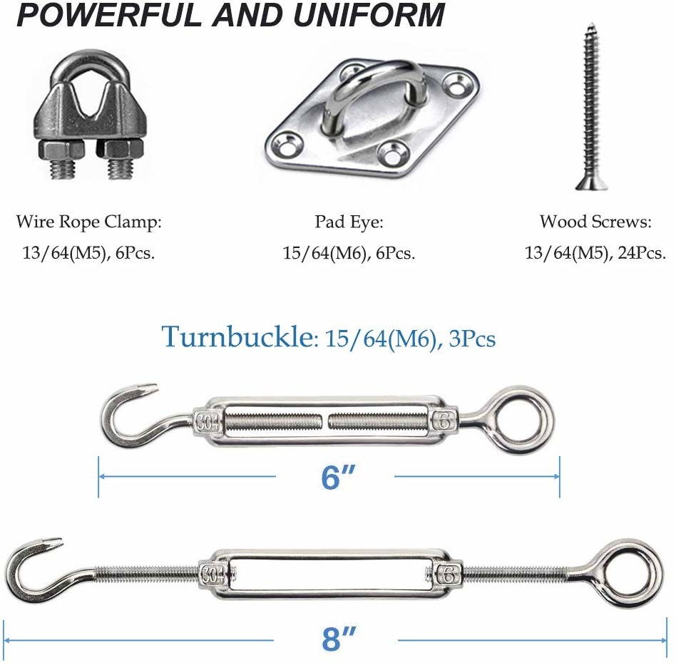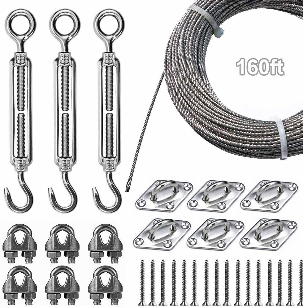 Luci all'aperto della corda che appendono corredo, grado commerciale - forte cavo metallico ed hardware, 304 corredi ben fatto della sospensione dell'acciaio inossidabile con grande durevolezza e resistenza alla ruggine - facile installare