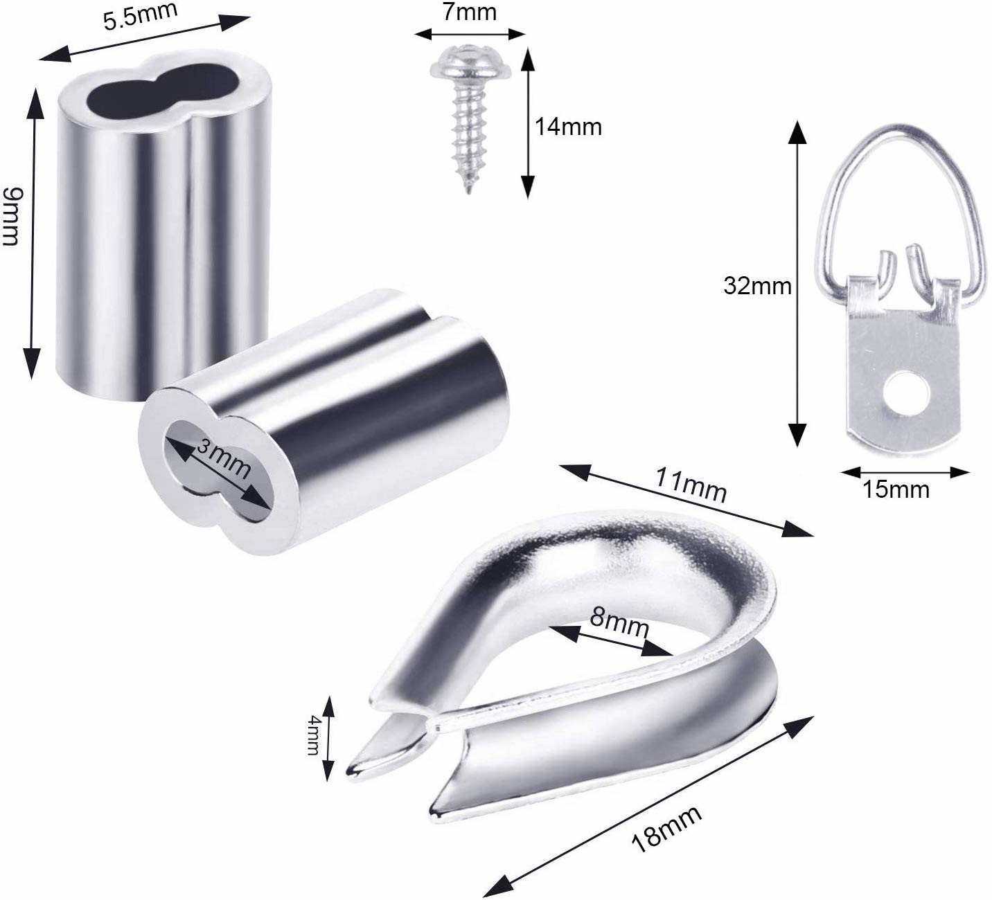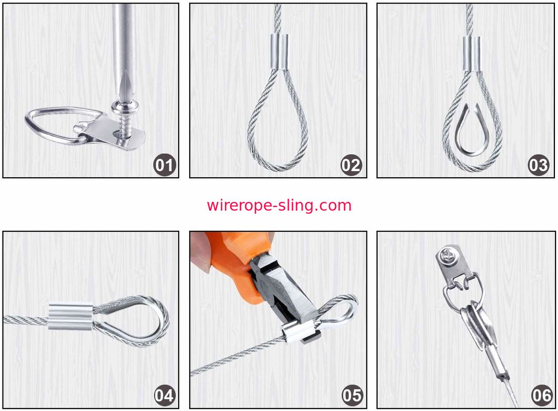 Rappresenti i ganci di immagine d'attaccatura dell'anello a D del corredo con le viti, il cavo metallico d'attaccatura dell'immagine, il ditale dell'acciaio inossidabile, la manica di piegatura di alluminio del ciclo, supporti fino a 33 libbre (100 piedi)