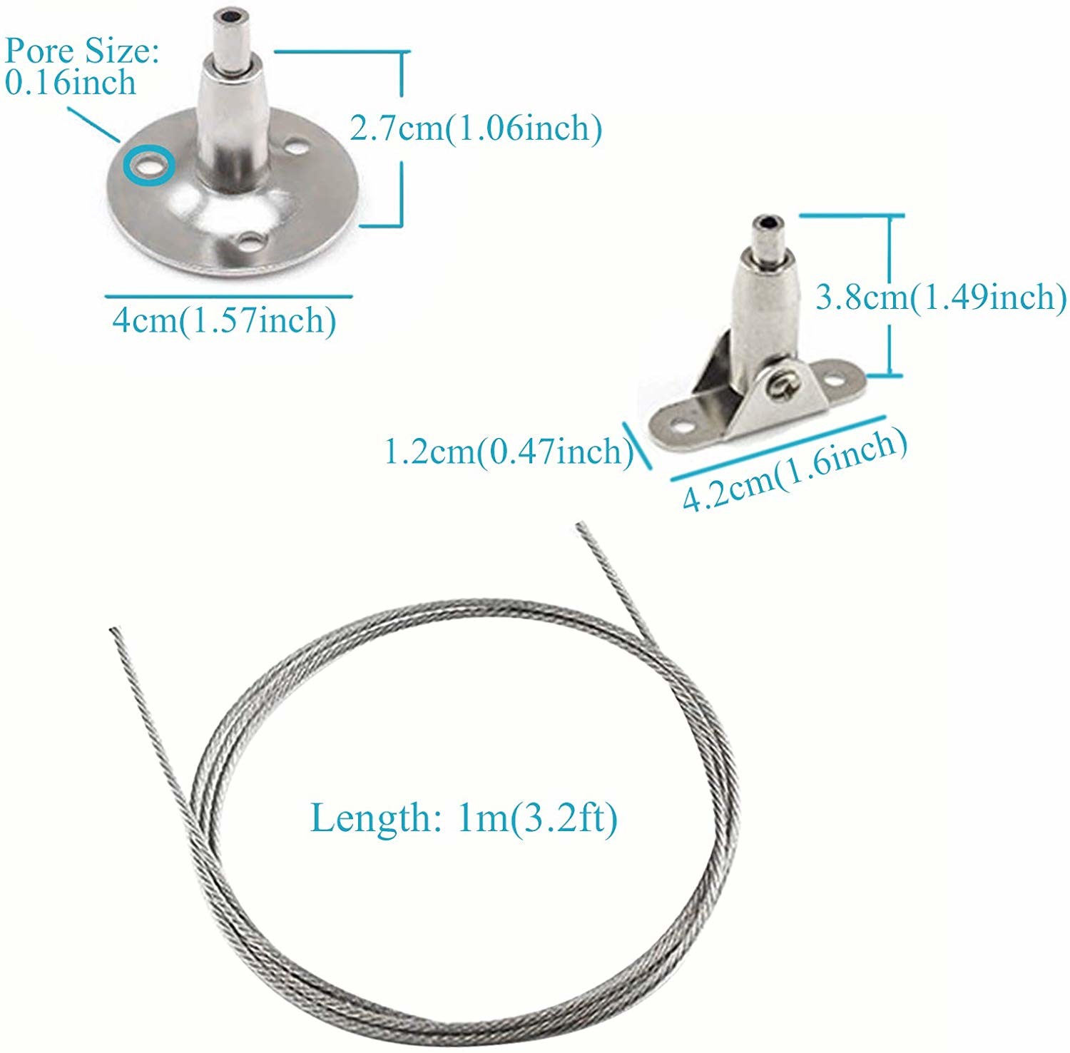 Un corredo di 4 dei pc cavi della sospensione, carico sistemato allungabile regolabile 5KG di lunghezza del cavo dell'acciaio inossidabile per striscia 3.2ft/1m, per l'esposizione di mostra di arte della pittura del tabellone per le affissioni